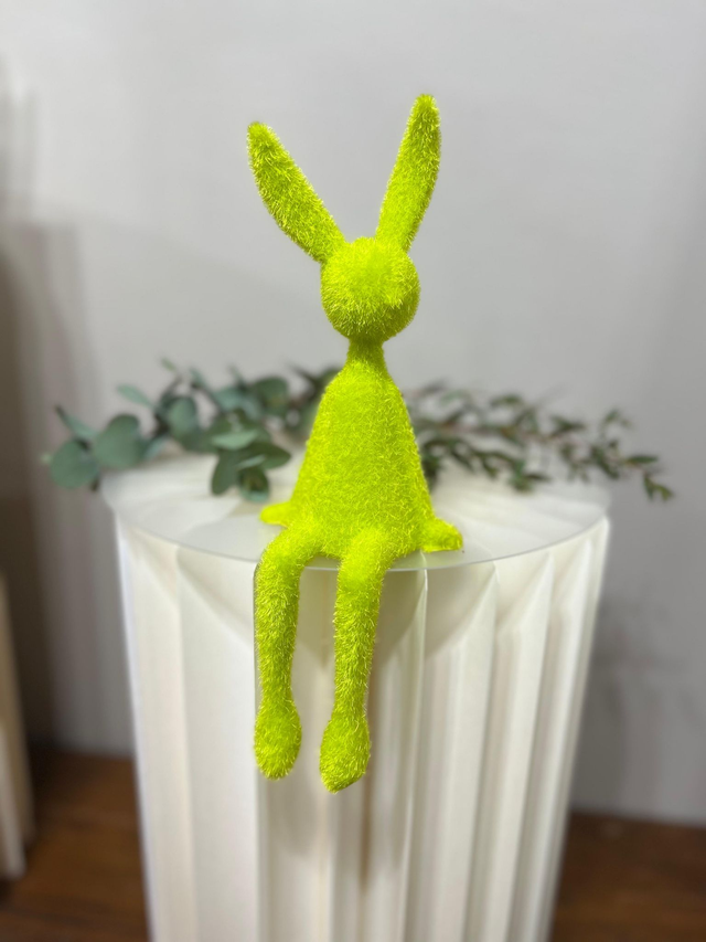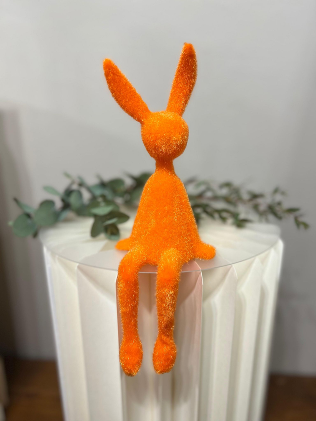Der Deko-Hase Happy Hop bringt fröhliche Frühlingsstimmung in dein Zuhause. Mit seiner flauschigen Oberfläche, den langen Beinen und den leuchtenden Farben ist er ein echter Blickfang – ideal für Osterdeko, Regale oder Fensterbänke.